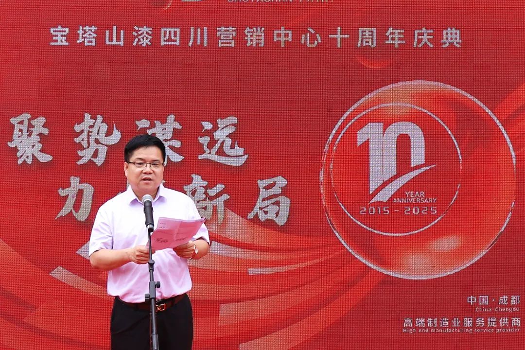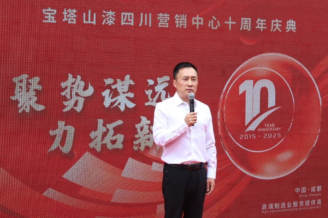 2025年5月26日,聚勢謀遠(yuǎn) 力拓新局——寶塔山漆四川營銷中心十周年慶典盛大啟幕。陜西寶塔山新材料科技有限公司董事長楊鵬剛等管理層及客戶代表出席此次活動。